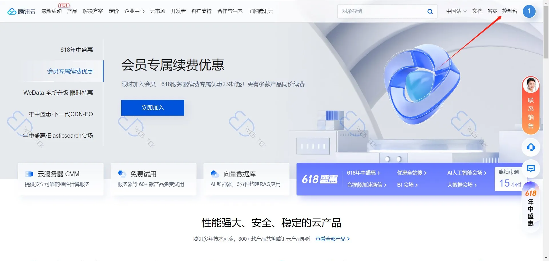 登录后,点击右上角控制台。